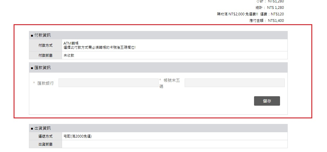 可於收到訂單信件後點選回填卡號後五碼的欄位才成立如範例圖